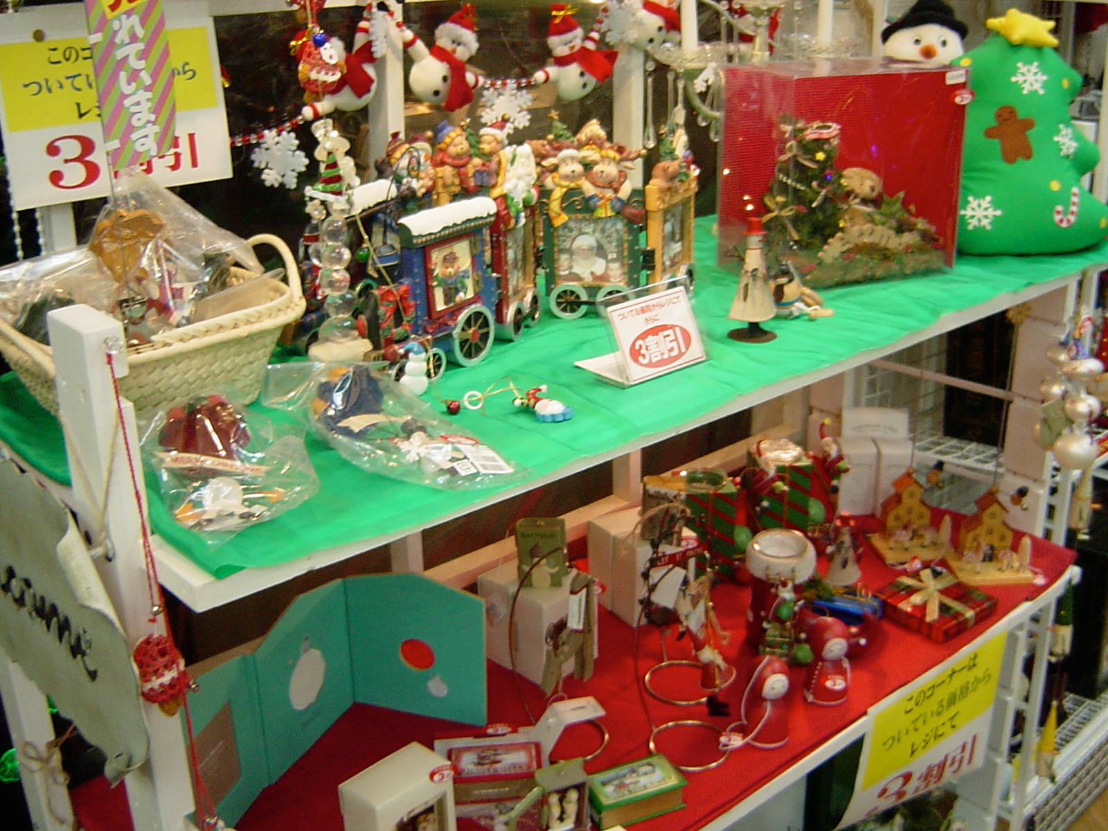 寝装の宮腰店内にありますクリスマスグッズの一部商品を3割引にて販売しております。