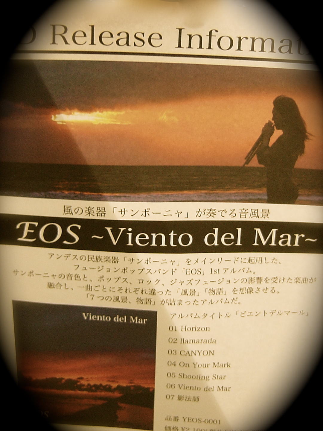 フュージュンポップスバンド”EOS”の1stアルバム。7曲入り2,100円です。