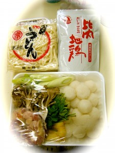 通常だまこ鍋セット800円に280円の比内地鶏の希釈スープ、さらに鍋谷の生うどん105円+トータル¥1,185を