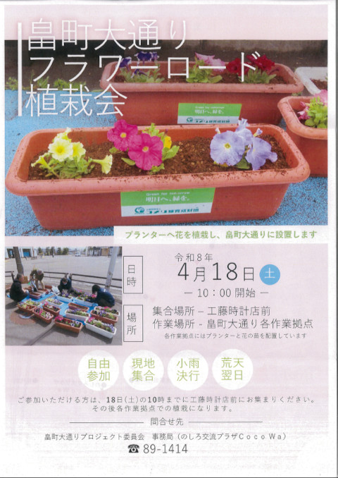 ご協力いただける方は、花苗の植え付け、毎朝の水やりなどのお世話をお願いいたします。